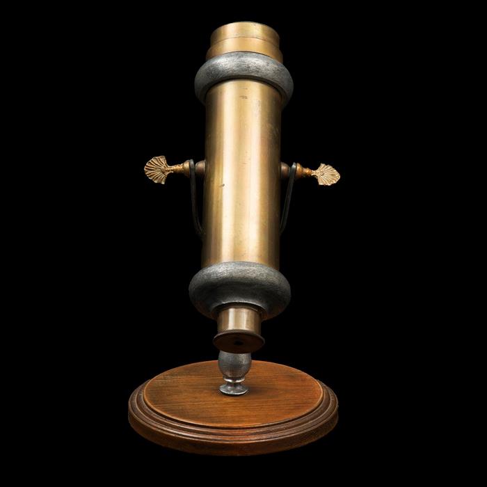 Latón dorado y metal plateado; con base de madera