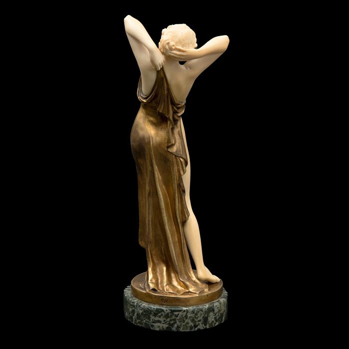*Ferdinand Preiss fue uno de los escultores más representativos del Art Deco, sus figuras captan el momento justo de una acción, como en esta interpretación en la que la diosa comienza a retirar su túnica y soltarse el cabello, escena previa a la figura clásica "El baño de Afrodita"