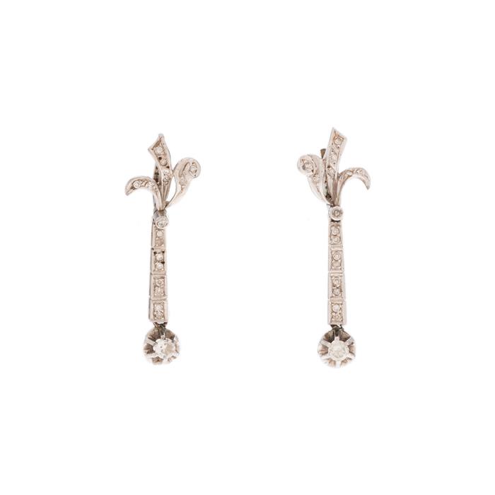 Subasta 1248T, Lote # 346 Pendantif y par de aretes con diamantes en plata paladio. 3 diamantes corte brillante de ~0.90ct. Peso: 9.6 g. Estimado $8,000-12,000