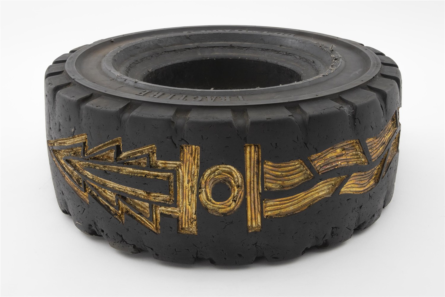 Llanta de montacarga tallada en bajo relieve con hoja de oro
