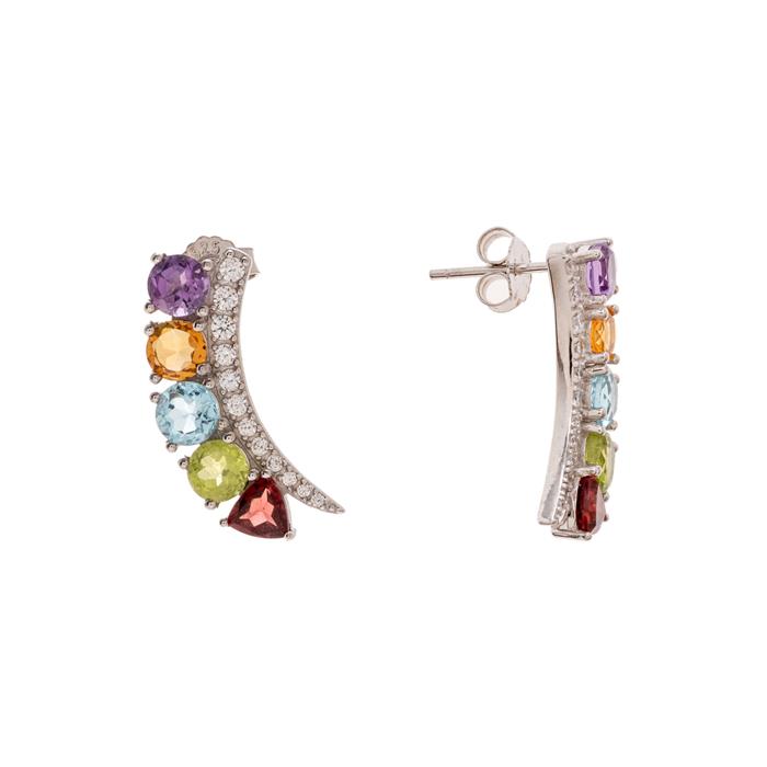 PAR DE ARETES CON GEMAS SEMIPRECIOSAS Y CIRCONIAS EN PLATA 925 Poste y contra. Peso total: 5.4 g. Tamaño: 1.8 cm x 2.7 cm Gemas semipreciosas corte redondo y corte triangular ~4.5 ct