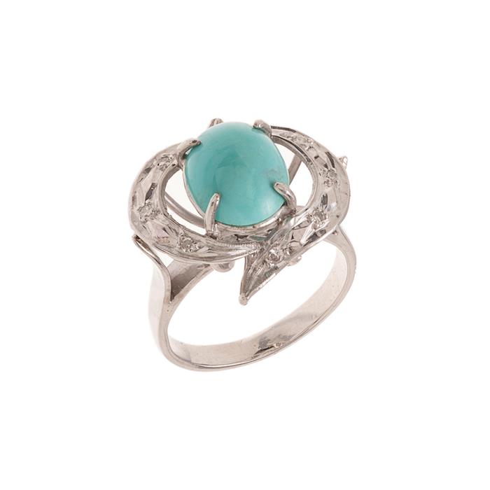 JUEGO DE PAR DE ARETES Y ANILLO CON TURQUESAS Y CIRCONIAS EN PLATA PALADIO