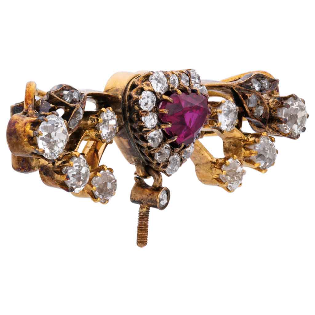 PRENDEDOR CON RUBÍ Y DIAMANTES EN ORO AMARILLO DE 14K