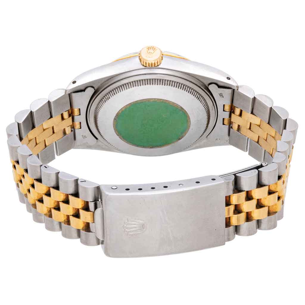 Icónico reloj suizo de la casa Rolex, el DATEJUST REF. 16013 combina acero inoxidable con oro amarillo de 18K en un diseño clásico y atemporal. Con caja de poco más de 35 mm, bisel estriado en oro y brazalete Jubilee, este modelo destaca por su fiabilidad, elegancia y movimiento automático con fechador. Un símbolo de distinción desde los años 80´s.