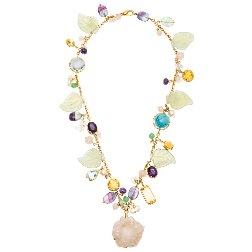 GARGANTILLA CON CUARZOS, TURMALINAS, CITRINAS, JADEITA, PERLAS Y CRISOPRASA EN ORO AMARILLO DE 18K