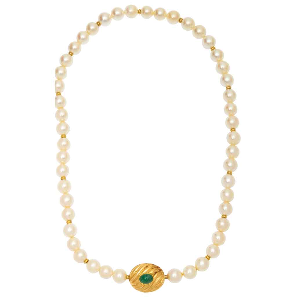 COLLAR DE PERLAS CON BROCHE EN ORO AMARILLO DE 18K CON ESMERALDA