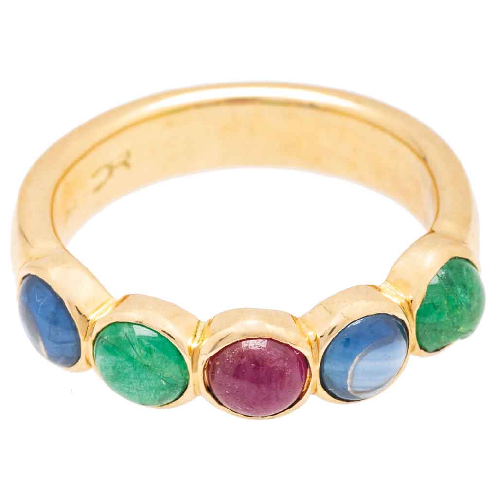 ANILLO CON ESMERALDAS, ZAFIROS Y RUBÍ EN ORO AMARILLO DE 18K