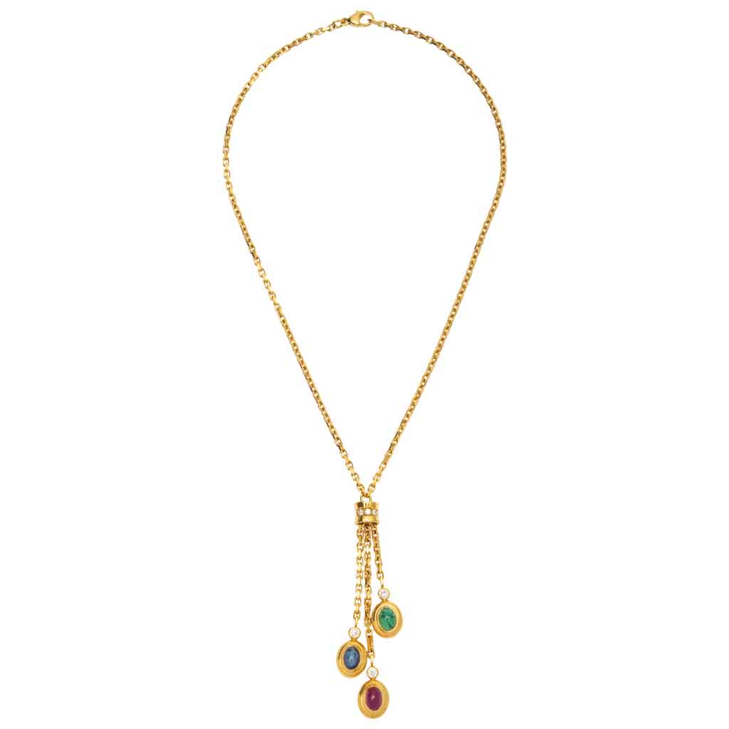 GARGANTILLA CON ESMERALDA, ZAFIRO, RUBÍ Y DIAMANTES EN ORO AMARILLO DE 18K