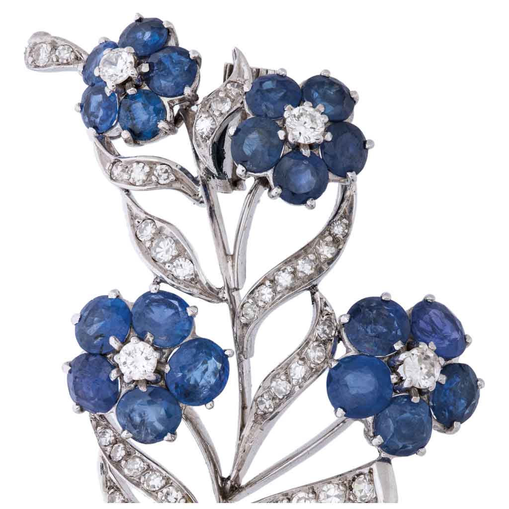 PRENDEDOR CON ZAFIROS Y DIAMANTES EN PLATA PALADIO
