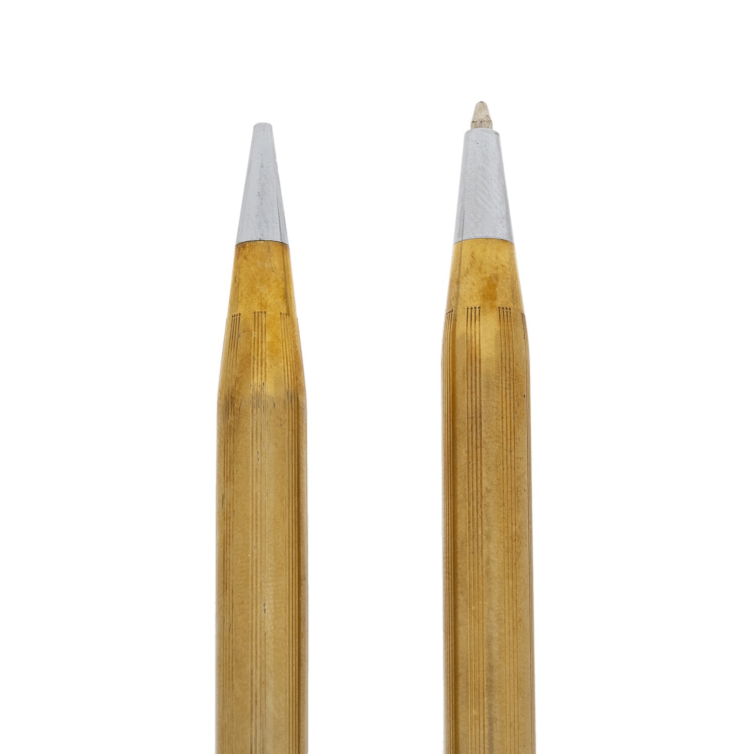 BOLIGRAFO Y PORTAMINAS CROSS EN CHAPA DE ORO AMARILLO DE 10K Y ACERO INOXIDABLE Cuerpo y capuchón de Cross en chapa de oro de 14k y vistas blancas (acero inoxidable). Serie: NV Accesorios: estuche y manual. Estimado $1,000-2,000