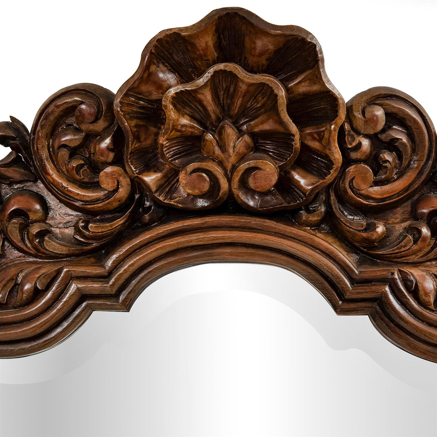 Decorado con venera, molduras, ornamentos vegetales tallados y en relieve