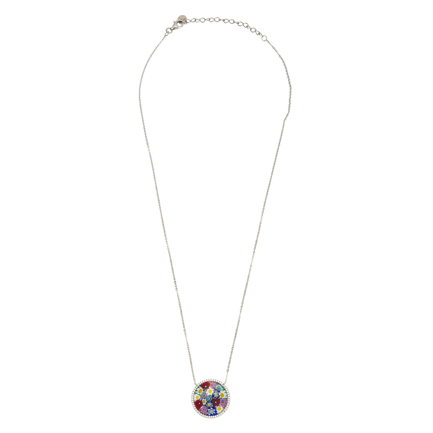 COLLAR Y PENDIENTE CON CRISTAL MURANO MULTICOLOR Y CIRCONIAS EN PLATA 925 Y RODIO Broche de mosqueton y charm. Largo: 48.0 cm aprox. Peso: 7.0 g. Estimado $1,200-1,800