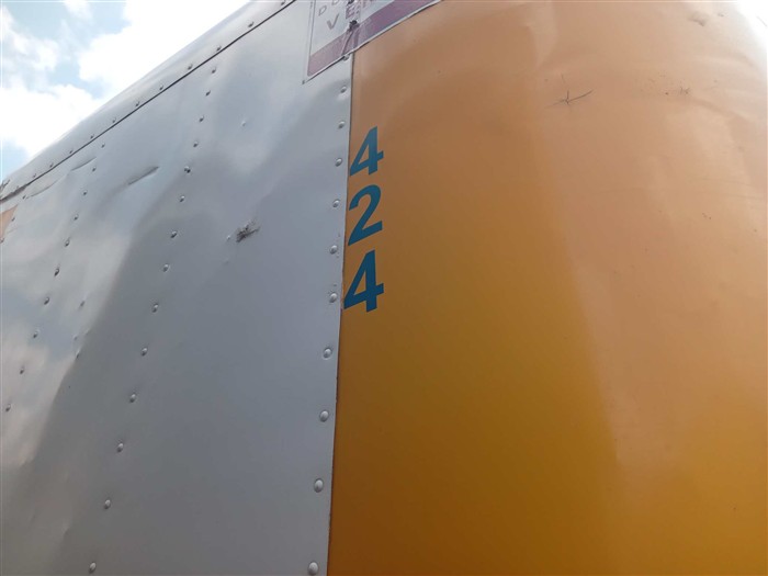 Eco. U424; Remolque, Caja cerrada; Marca: Fareresa; Modelo: 2003; Serie: 3J9SAL2473807414015; Ubicación: Toluca; Observaciones: Unidad sin probar, esquinas dañadas, patin de elevacion sin probar, suspensión sin probar; chasis con corrosión; carrocería con golpes ligeros, largo 11.85, ancho 2.50, altura 4.10, llantas lisas y dañadas. ;