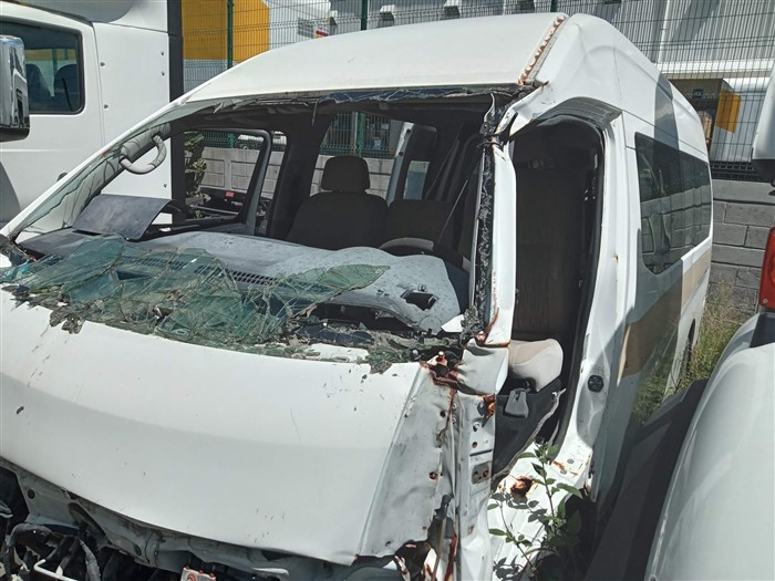 Subasta 55COPP, Lote # 81 Eco. U52204; Camioneta de pasajeros, Urvan; Marca: Nissan; Modelo: 2017; Serie: JN1BE6DS2H9013884; Ubicación: Tecamac; Observaciones: Unidad accidentada, en malas condiciones, bolsa de aire activada, palanca dañada, motor a gasolina con fugas de aceite, sin batería, sin llave, sin clutch; Transmisión desmontada; diferencial sin probar, con fugas de aceite; Interiores rotos, vestiduras rotas; Instrumentos rotos; Suspensión de muelles; Chasis con corrosión; Carrocería con golpes ceveros, fascia delantera desmontada, golpa frontal, sin parrilla, puerta izquierda desmontada, parabrisas roto, marco lado izquierdo roto, sin faro izquierdo, sin calaveras; 4 Llantas lisas y dañadas.; $ Estimado $15,000