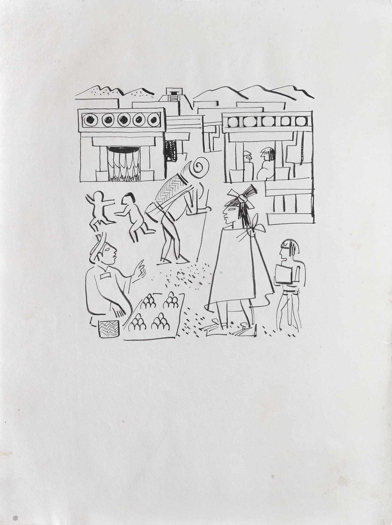 Subasta 1134, Lote # 30 MIGUEL COVARRUBIAS (Ciudad de México, 1904 - Ciudad de México, 1957) Ilustraciones para el libro Historia del Pueblo Mexicano a) Boceto para la portada del libro Historia del Pueblo Mexicano, b) Miguel Hidalgo con estandarte y huestes indígenas, c) Benito Juárez, d) José María Morelos y Pavón con sus generales, e) Porfirio Díaz en 1908 rodeado de Científicos: Rosendo Pineda, José Castelló, Ramón Corral, Pimentel y Fagoage, Limantour y Justo Sierra, f) Sin título (La Conquista), g) Virrey Antonio María de Bucareli y Urzúa, h) Agustín I Emperador, i) Santa Anna, j) Virrey Antonio de Mendoza, k) Virrey Juan Vicente de Güemez, l) Sin título (Escena prehispánica), m) Sistema de Castas, n) Álvaro Obregón, o) Melchor Ocampo, p) Fray Bartolomé de las Casas, q) Sin título (Porfirio Díaz), r) Sin título (Escena prehispánica II), s) Sin título (Línea de sucesión de Tlatoanis), t) Sistema de Castas II, u) Sistema de Castas III, doble vista, v) Emiliano Zapata, w) Documentos relacionados con la investigación Dos firmados Tinta, acuarela y lápiz de grafito sobre papel Piezas: 23 Este lote incluye documentos relacionados con la investigación realizada para el libro "Historia del Pueblo Mexicano" de Luis Chávez Orozco en 1940, proyecto editorial que no se concretó. Agradecemos a Adriana Williams y a Anahí Luna por la verificación de autenticidad de esta obra, septiembre de 2023. Procedencia: perteneció a la colección de Luis Chavez Orozco, México; colección de General Tomás Sánchez Hernández, México y Jorge Vallejo, México. Al tratarse de bocetos presentan detalles de conservación normales por el uso. Estas obras han sido solicitadas para ser exhibidas en "Miguel Covarrubias. Un arte sin fronteras", muestra organizada por Fomento Cultural Citibanamex con la curaduría de Anahí Luna y Sergio Raúl Arroyo, que será presentada en 2025 en el Palacio de Iturbide, Centro Histórico, en Ciudad de México. Miguel Covarrubias publicó diversos textos, tanto individuales como en colaboración, los cuales estuvieron inclinados a temas sociales e históricos. En 1930 fue reconocido con una beca por parte de la Fundación Guggenheim, la cual le permitió realizar una investigación en la isla de Bali, Indonesia, que resultó en un libro donde se reunieron observaciones e ilustraciones en las que convergen de manera exquisita el carácter científico y artístico. Su perfil de investigador lo llevó a participar en excavaciones arqueológicas, entre las que destacan las realizadas al sur de Veracruz donde se encontraron asentamientos Olmecas. Lo anterior, aunado a otras experiencias se vio reflejado en las obras artísticas que realizó a lo largo de su vida, como se observa en los murales plasmados en el Hotel del Prado (1947) o en el actual Museo de Artes Populares (1951). En los años cincuenta comenzó uno de sus proyectos más ambiciosos, el libro cuyas páginas primigenias apreciamos en este lote, en las que se ve reflejado a través de ilustraciones de la historia mexicana y sus personajes clave, plasmados a la manera de Miguel Covarrubias con cierta picardía sin dejar de lado la seriedad que el trabajo pretendía. "Fue Miguel Covarrubias quien, con la sensibilidad que poseía, comenzó a divulgar y valorizar algunos de los objetos elaborados por nuestros grupos indígenas que habían sido, si no menospreciados, al menos muy poco tenidos en cuenta por los arqueólogos, ya que estos veían en las obras de las artes prehispánicas el punto de vista de su importancia utilitaria; en cambio Miguel Covarrubias comenzó a mostrar en ellos el gusto estético, con lo que realzó en forma única el conjunto de características que hacen sobresalir la obra de arte de nuestras culturas autóctonas". Eusebio Dávalos Hurtado. Fuentes consultadas: -RÍOS SÁNCHEZ, Miguel Ángel. Miguel Covarrubias (1904-1955) y la configuración de la estética Olmeca. España. ÉNDOXA: Series Filosóficas. Universidad Nacional de Educación a Distancia, no. 28, 2021, pp. 165-187. -RUBÍN DE LA BORBOLLA, Daniel F. Miguel Covarrubias 1905-1957. Reino Unido. American Antiquity, Cambridge University Press, no. 23, julio de 1957, pp. 63-65. Medidas variables Estimado $4,500,000-5,500,000