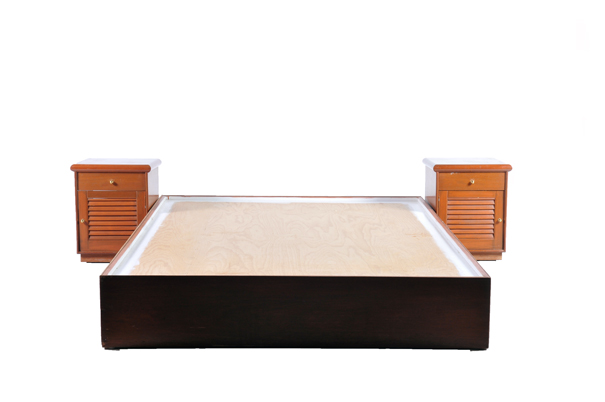 b) Par de burós. Con 1 cajón, 1 puerta abatible y tiradores de metal dorado. Dimensiones: 55 x 44 x 42 cm.