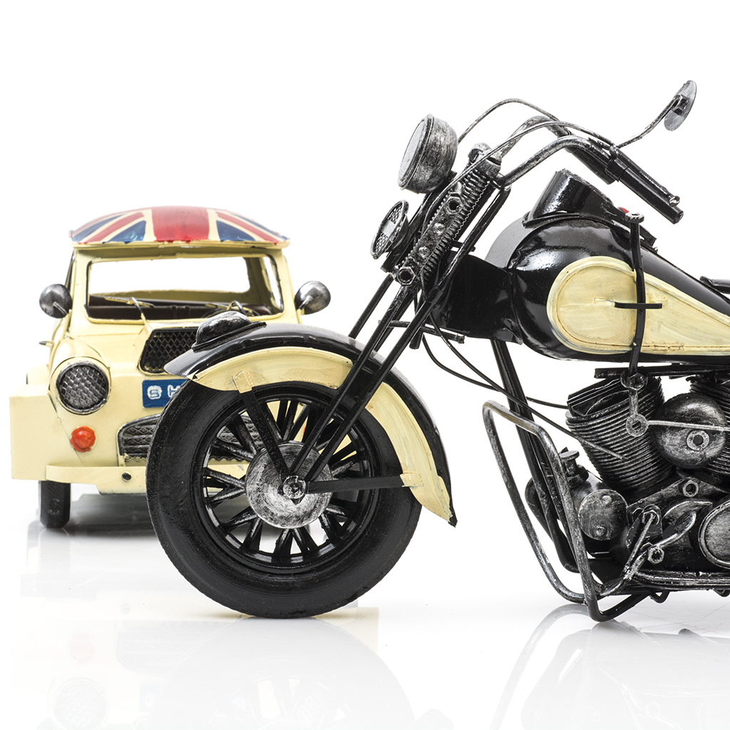 Consta de: 3 Mini Coopers, camioneta Pickup, Combi, Ford T y motocicleta.