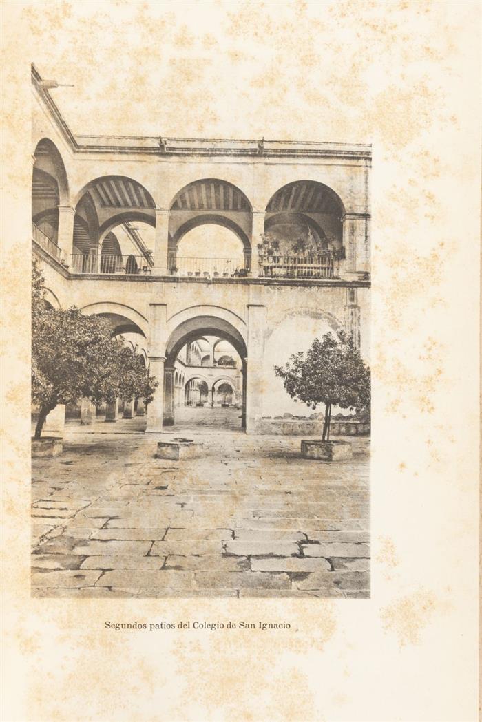 4o. marquilla, 7 h. + 244 + 130 p. + 1 h. Diez láminas y croquis plegado "Croquis de las plantas baja y alta del Colegio de San Ignacio o de La Paz". Dedicado y firmado por el autor. Encuadernado en pasta dura, lomo en piel.
