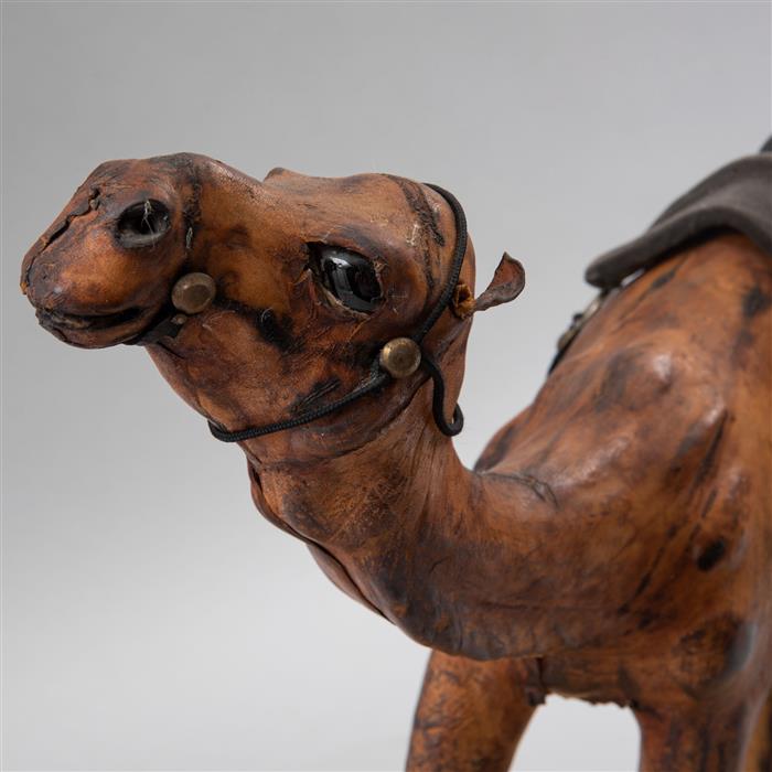 Elaborado con estructura rígida, recubierta en piel y ojos de cristal, con base escalonada.