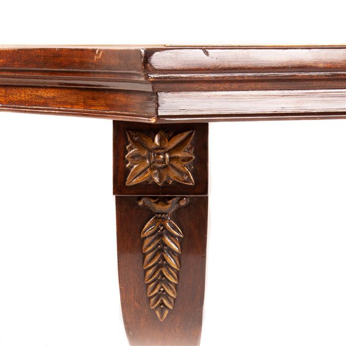 Decorada con rosetón y hoja de fronda en metal dorada y escalonados.