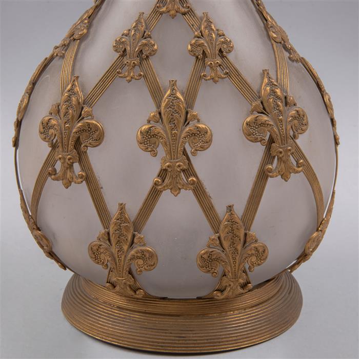 Elaborados en cristal opaco con aplicaciones de metal dorado.