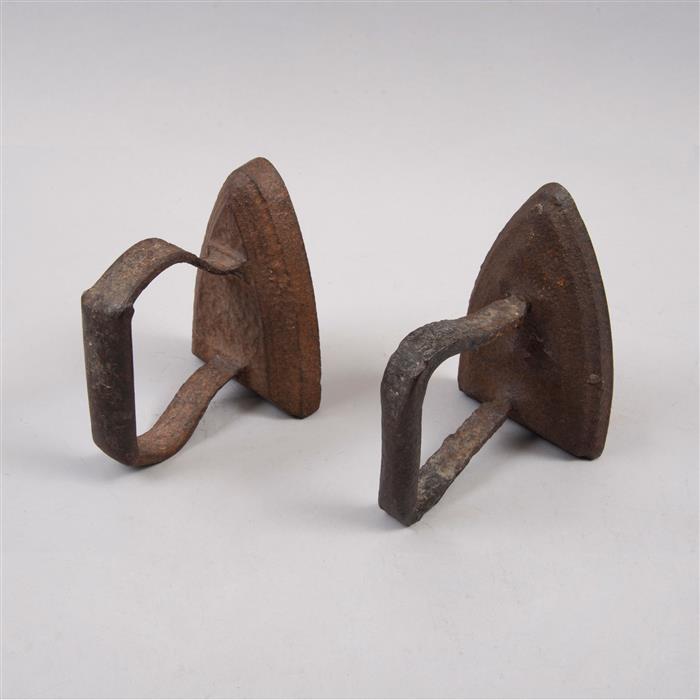 Par de caracoles en fundición de bronce patinado y 2 planchas de hierro de carbón.