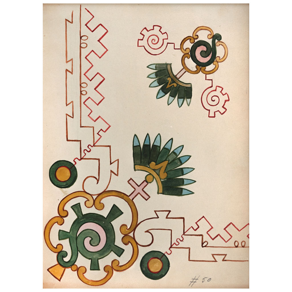 Subasta 997, Lote # 73 ROBERTO MONTENEGRO (Guadalajara, Jalisco, 1885 - Pátzcuaro, Michoacán, 1968) Proyecto para un mural #2 a) Mascarones #62 Firmada Mixta sobre papel 29.5 x 21.5 cm b) #50 Sin firma Mixta sobre papel 29.5 x 22 cm Piezas: 2, enmarcadas juntas Con copia de constancia de opinión de la Galería de Arte Mexicano, abril del 2017. Roberto Montenegro fue un pintor jalisciense cuya obra es considerada una excelsa aportación a la pintura moderna de México. Su mayor contribución artística se encuentra en su producción mural, puesto que los trabajos que hizo entre 1924 y 1928 enriquecieron el movimiento muralista al tratar temas novedosos con un estilo eminentemente decorativo y hasta fantástico. Su excelente capacidad para el dibujo fue un conductor importante para la realización de sus murales, el cual transitó desde líneas definidas y cerradas con tendencia hacia las antiguas formas de inspiración italiana, hasta el uso de contenidos mexicanos mediante figuras de la geometría sagrada de las grecas prehispánicas. Fuente consultada: MOYSSEN, Xavier. Roberto Montenegro. Exposición de homenaje MAM. México. INBA, 1970, pp. 20 y 21. Estimado $55,000-70,000