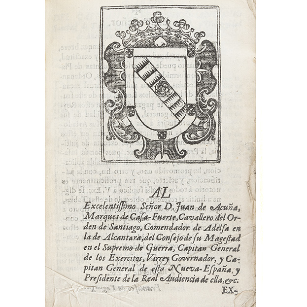 Subasta 1012, Lote # 162 Fagoaga, Francisco de. Tablas de las Cuentas del Valor Líquido de la Plata del Diezmo del Intrínseco y Natural de la que se Llama Quintada, y de la Reducción de sus Leyes a la de 12 Dineros. Según las Novissimas Ordenanzas de su Magestad y de los Derechos que de la Plata, y Oro se le Pagan en estos Reynos, en Conformidad de sus Leyes Reales, y Cédulas por... quien las Dedica al Excmo. Señor Juan de Acuña. Reimpressas en México: Imprenta del Lic. D. Jofeph Jauregui, 1773. 8o. marquilla, 6 h. + 68 p. Ilustrado con un escudo de armas y una viñeta, grabados. Textos con ligeras manchas de óxido; portada con pequeño faltante sin afectar texto; portada y primera hoja con dobleces y margen externo deteriorados; páginas 49 y 51 pegadas y rasgadas, afecta poco texto. Encuadernado en pasta semi dura, en piel. Palau: 86282. Estimado $8,000-10,000