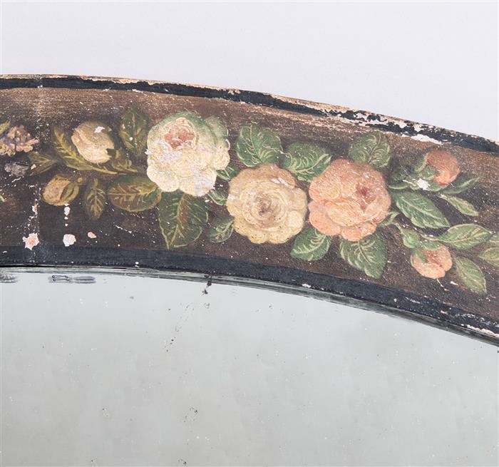 Decorado con elementos florales sobre tela adherido al marco.
