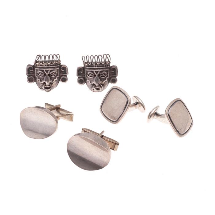 Cinco pares de mancuernillas en plata .925.