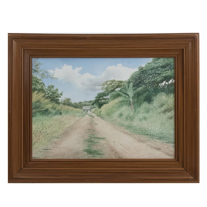 b) FIRMADO F. FRANCO. Paisaje. Fechada 96. Acuarela sobre papel. 39 x 69 cm. Enmarcado.