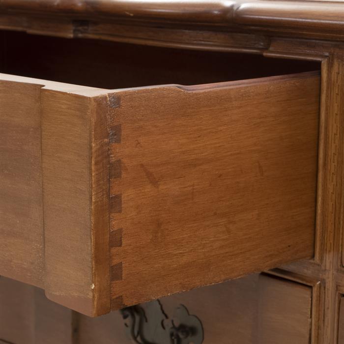 Con cubierta rectangular, 9 cajones con tiradores de metal y soportes tipo zócalo