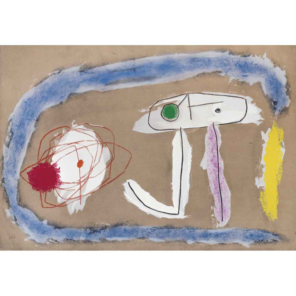 JOAN MIRÓ (Barcelona, España, 1893 - Palma de Mallorca, España, 1983) De serie la Cartones, 1959-1965: a)Femme et oiseaux dans la nuit ( Mujer y pájaro en la noche) b) Personnage (Personaje), 1960 Firmados en plancha Porchoirs sin número de tiraje Piezas: 2 Publicadas en: MOURLOT, Fernand. Joan Miró lithographies.Francia. Maeght Éditeur y en "The Pierre Matisse Gallery" de Nueva York.Impreso por Atelier Daniel Jacomet en París y realizado para el catálogo de la exposición "Miró Cartones, 1959 -1965". 31 x 22 cm cada uno Estimado $12,000-20,000