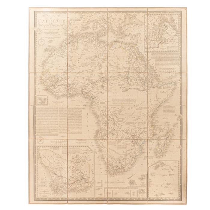Mapas grabados, con límites coloreados, montados sobre lino; plegados. Con sello del autor: "Desde 1822 el autor dio visto bueno sólo a los mapas que portan este mensaje y este timbre/sello. Él desconoce cualquier trabajo o cambio de fecha en los mapas después de esa".
