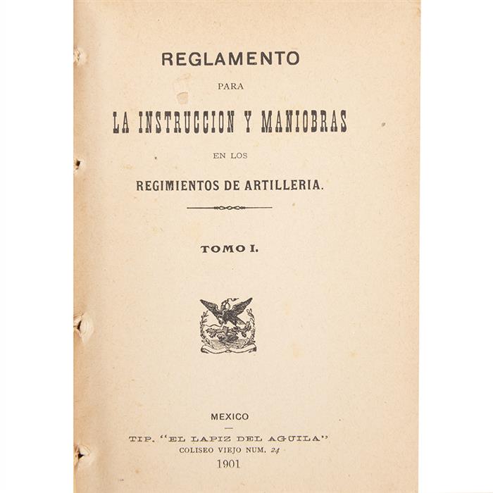 a) República Mexicana. Secretaría de Guerra y Marina. Reglamento para la Instrucción y Maniobras en los Regimientos de Artillería. México: Tipografía "El Lápiz del Águila", 1901.