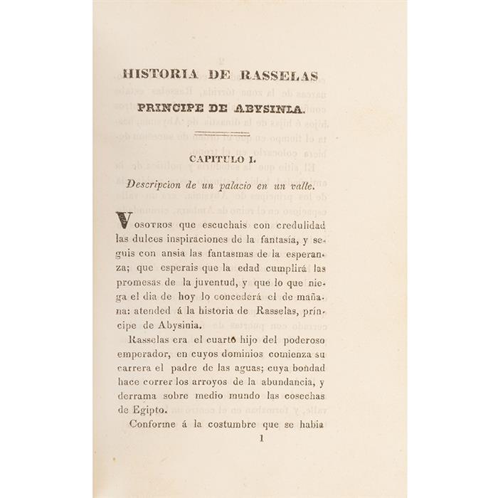 Johnson, Samuel. Historia de Rasselas, Príncipe de Abysinia. Méjico: Imprenta de Galván a cargo de Mariano Arévalo, 1834.