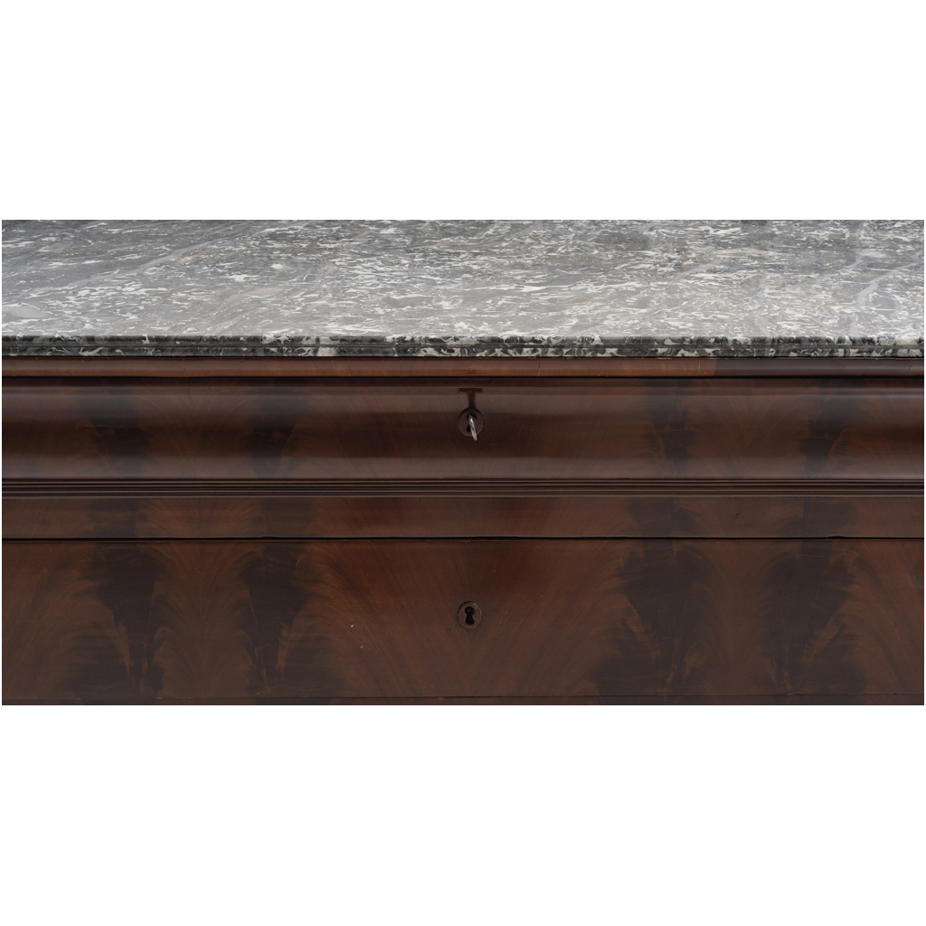 Elaborada en madera enchapada con cubierta de mármol gris