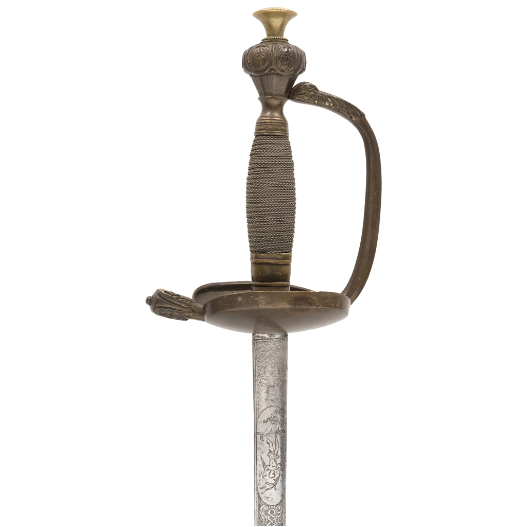 Elaborada con hoja de acero y empuñadura de bronce