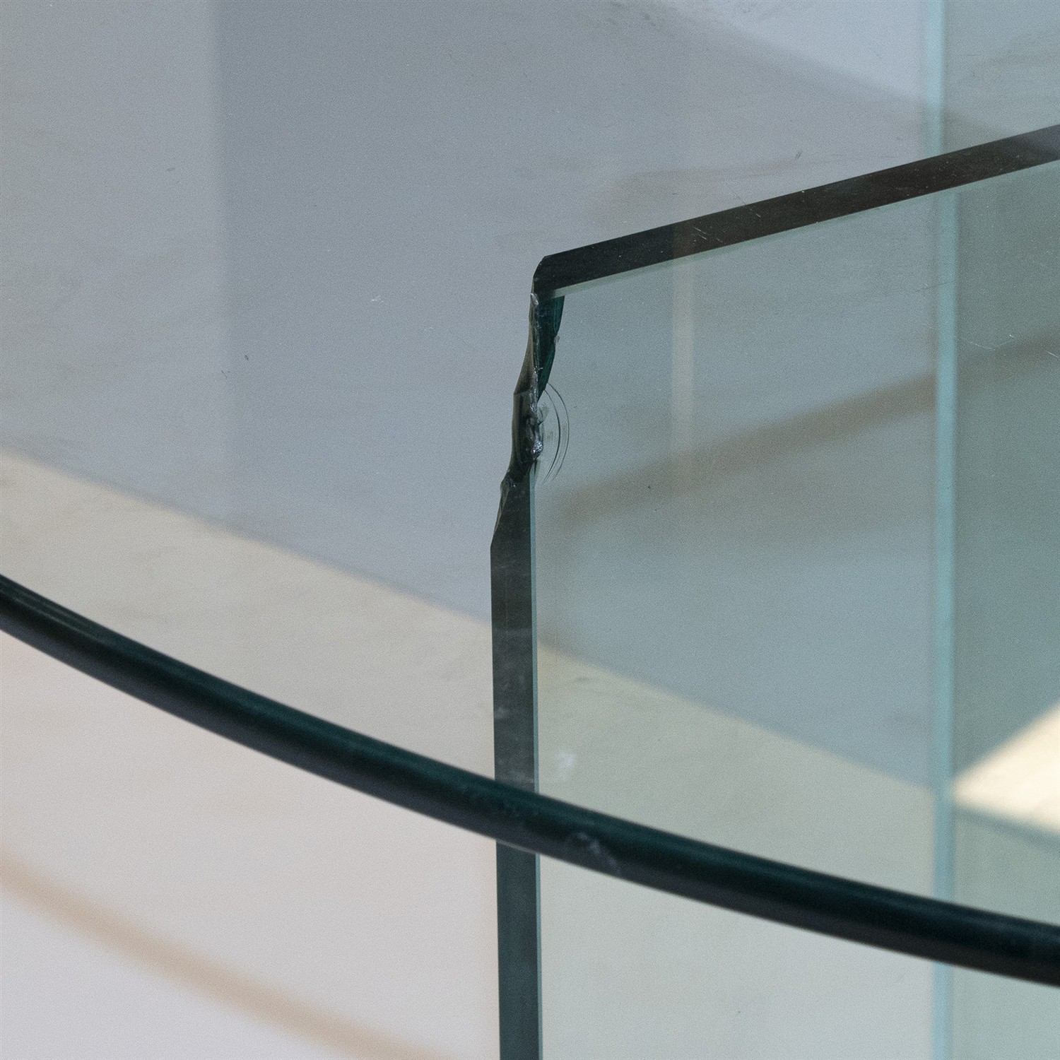 Elaborada en vidrio con una cubierta circular y soportes de ensamble