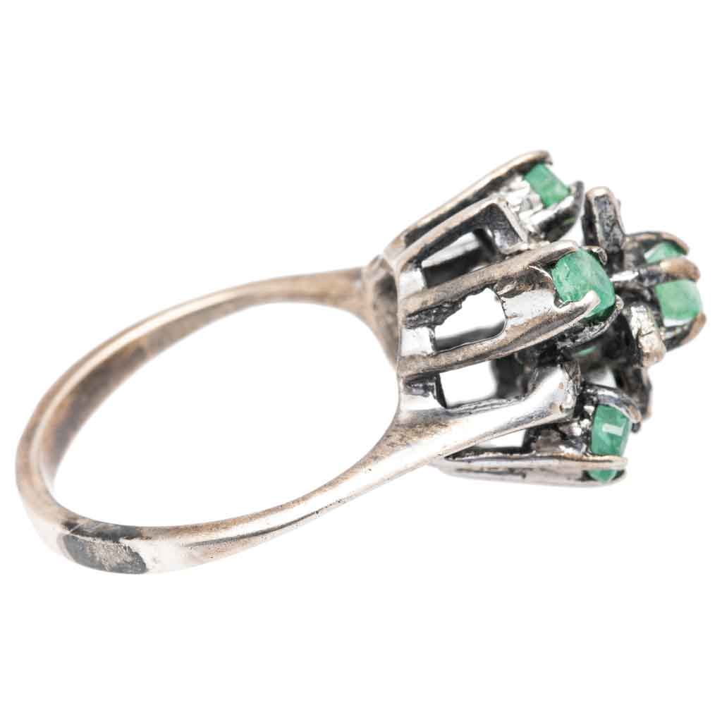 ANILLO CON ESMERALDAS Y DIAMANTES EN PLATA PALADIO