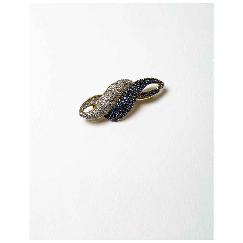 PENDIENTE / PRENDEDOR CON ZAFIROS Y DIAMANTES EN ORO AMARILLO DE 18K