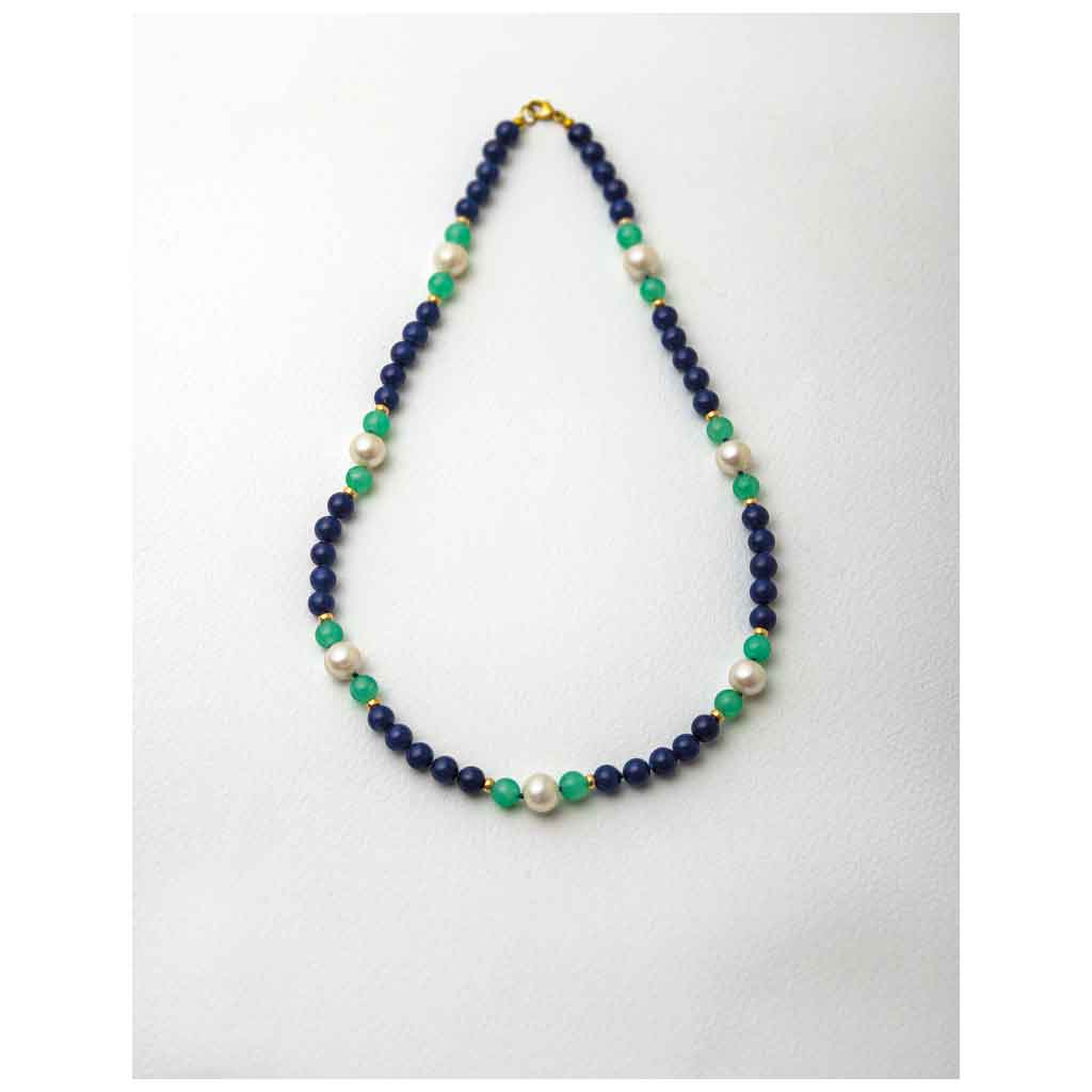 COLLAR DE LAPISLÁZULI, CRISOPRASAS Y PERLAS CON BROCHE EN ORO AMARILLO DE 18K