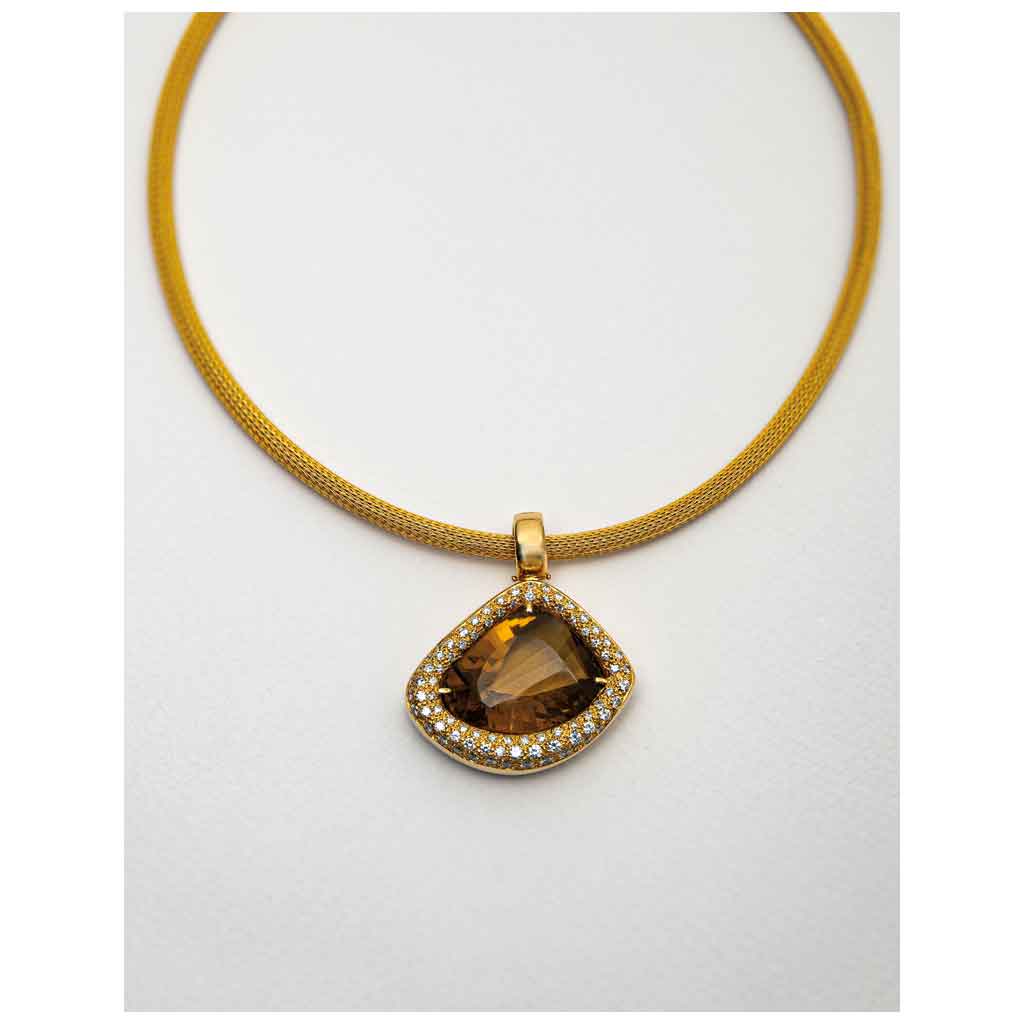 GARGANTILLA Y PENDIENTE CON CITRINA Y DIAMANTES EN ORO AMARILLO DE 18K