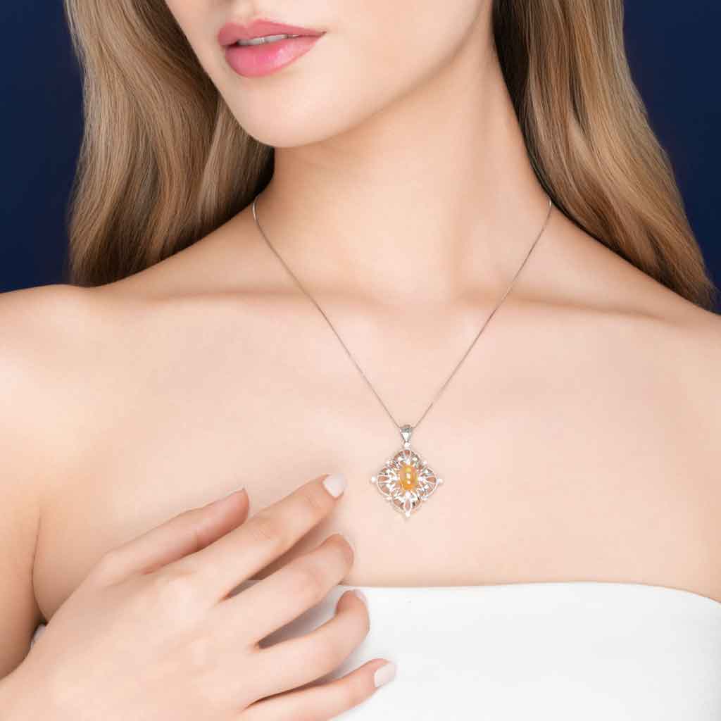 GARGANTILLA Y PENDIENTE CON ÓPALO Y DIAMANTES EN ORO BLANCO DE 18K