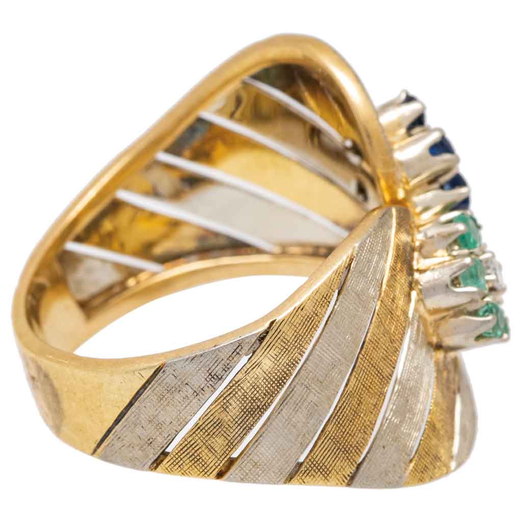 ANILLO CON ESMERALDAS, ZAFIROS Y DIAMANTES EN ORO AMARILLO DE 18K
