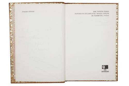 Subasta 714, Lote # 249 L - Fuentes Mares, José. Nueva Guía de Descarriados / Historia de un Conflicto: México - España. a) Nueva Guía de Descarriados. México: Editorial Joaquín Mortiz, 1977. 8o. marquilla, 208 p. Primera edición, firmada por el autor. Edición de 800 ejemplares, siendo esta la No. 338. Manchas de humedad, lomo por desprenderse. Encuadernado en pasta dura, en piel. b) Historia de un Conflicto: México - España. (El Tesoro del "Vita") Madrid: CVS Ediciones, 1975. 4o. marquilla, 223 p. Ejemplar dedicado y firmado por el autor. Encuadernado en pasta dura. Total de piezas: 2. Estimado $4,000-5,000