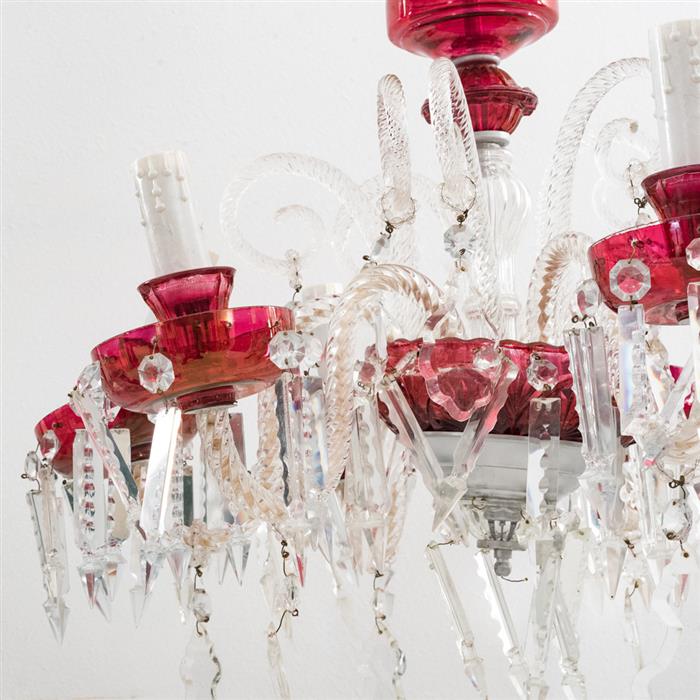 Decorado con elementos facetados, péndulos y cuentas de cristal.