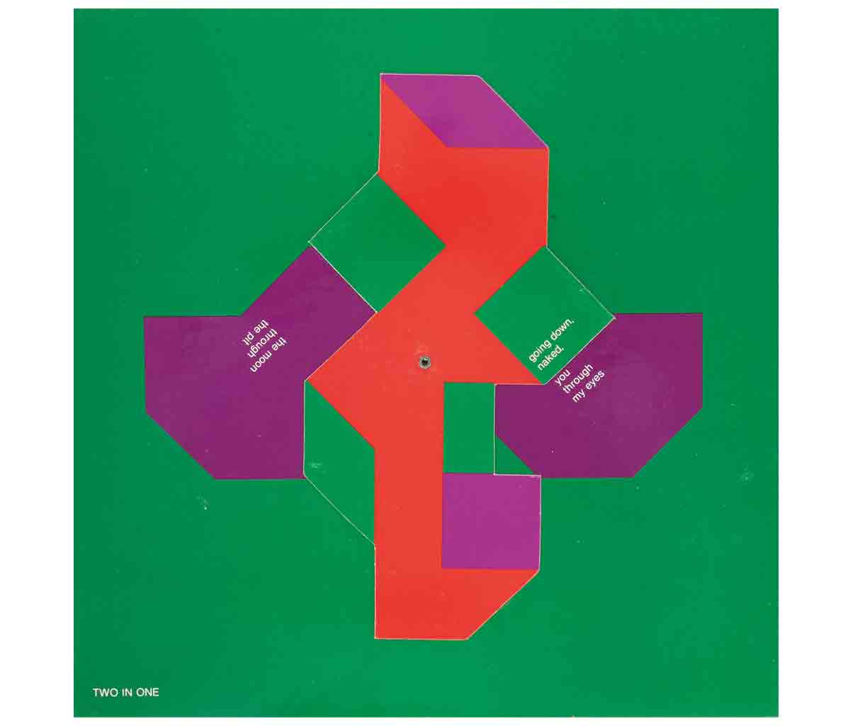 Subasta 1012, Lote # 197 Paz, Octavio - Katayama, Toshihiro. 3 Notations - Rotations. Cambridge, Massachusetts: Carpenter Center for the Visual Arts, Harvard University, 1974. 28.5 x 28.5 cm., lámina con texto + tres caleidoscopios geométricos diseñados por Toshihiro Katayama, con versos de Octavio Paz titulados: "Portrait", "Two in One" y "Bread or Riddle". "This edition is limited to 1000 copies of which 150 are numbered and signed by the author and the artist. An additional 26 copies lettered A - Z and signed by the author and the artist are not for sale", ejemplar sin numerar y sin firmas. Estuche con manchas. En caja estuche. "A través del movimiento y el juego de las figuras y de las palabras, Paz y Katayama ahondan en la relación subyacente entre el sentido y la forma. A diferencia de "Discos Visuales", obra realizada en colaboración entre ambos artistas, en esta ocasión Katayama realizó primero los diseños, para los cuales Paz ideó las palabras posteriormente". Estimado $8,000-10,000