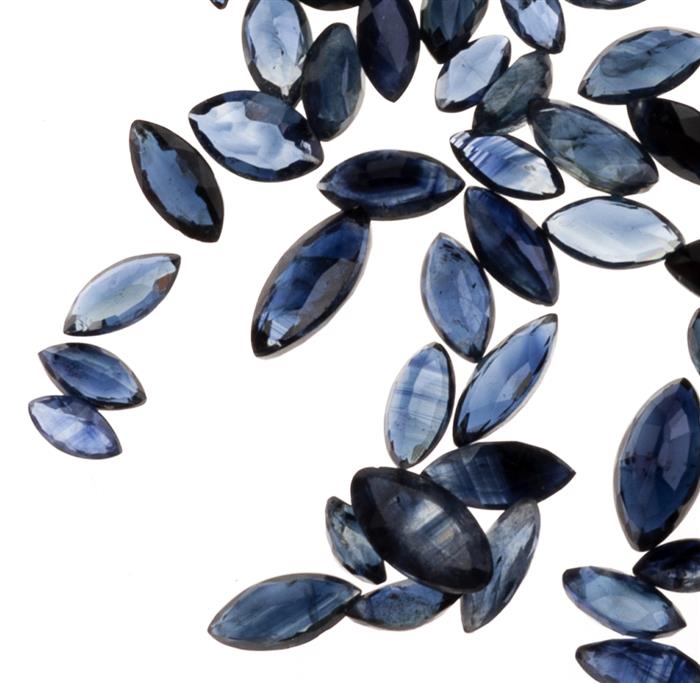 Sesenta y seis zafiros corte marquise distintas calidades~10.07 ct.