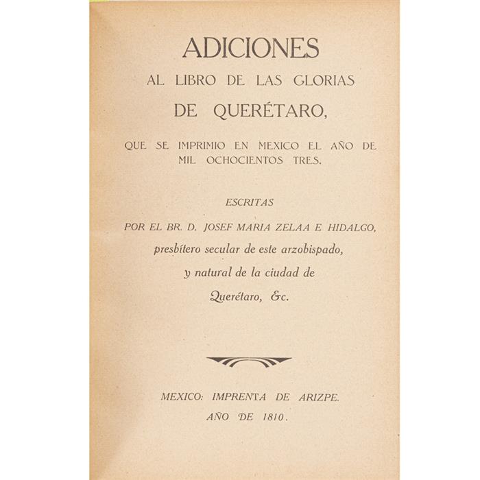 a) Adiciones al Libro de las Glorias de Querétaro, que se Imprimió en México el Año de Mil Ochocientos Tres. Querétaro: Imprenta Josefina, 1931.